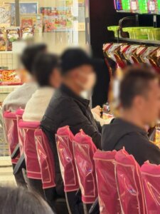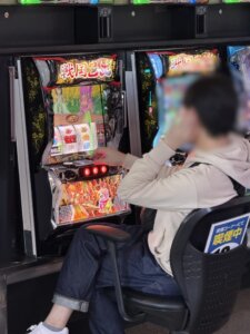 今回注目したのは、フジサーキット店様の今週のおすすめ機種である『ハナハナホウオウ~天翔~』です!幅広い年齢層のお客様がご遊技されており、しっかり稼働もしていました!夕方から夜にかけてまだまだ稼働も高くなっていきそうな雰囲気でした!