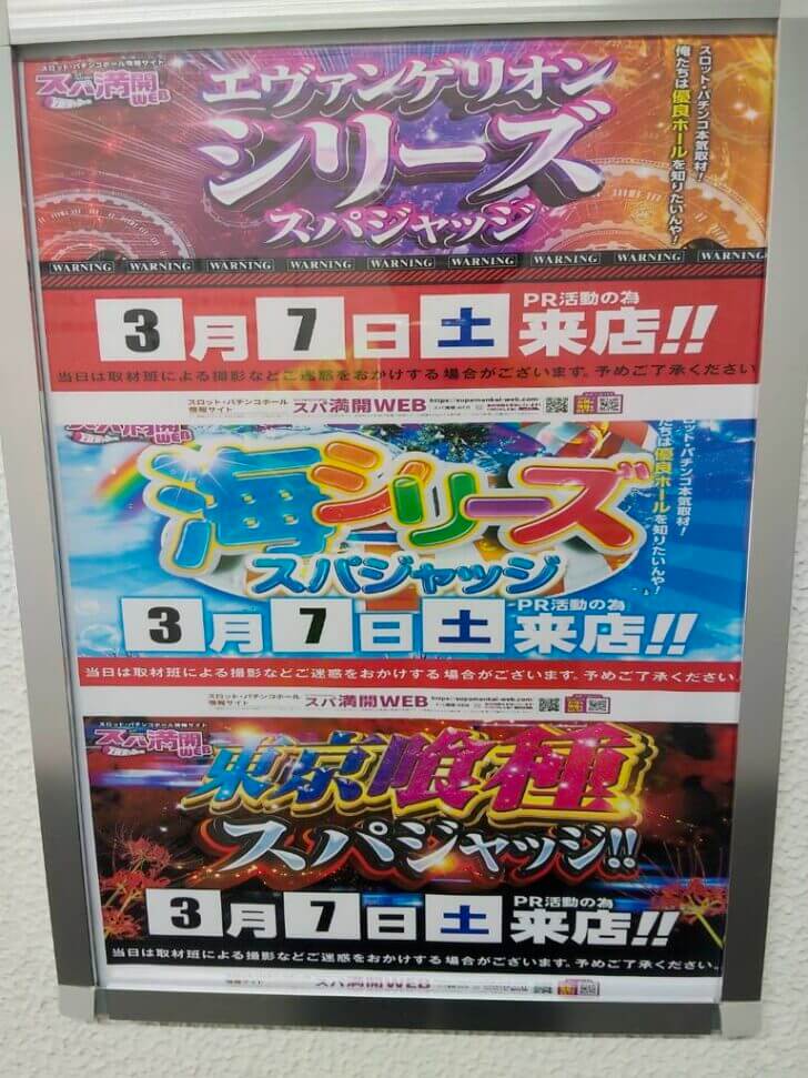 3月7日(土曜日)に愛知県安城市にございます《マルハン安城店様》へ『東京喰種スパジャッジ』&『エヴァンゲリオンシリーズスパジャッジ』&『海シリーズスパジャッジ』でお伺いしました!!